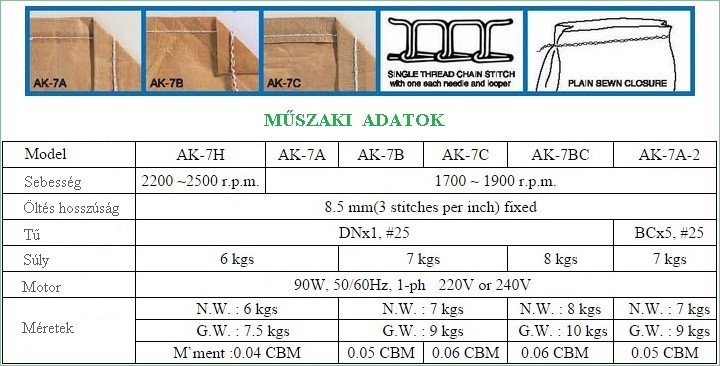 zsákok lezárására alkalmas kézi ipari varrógép